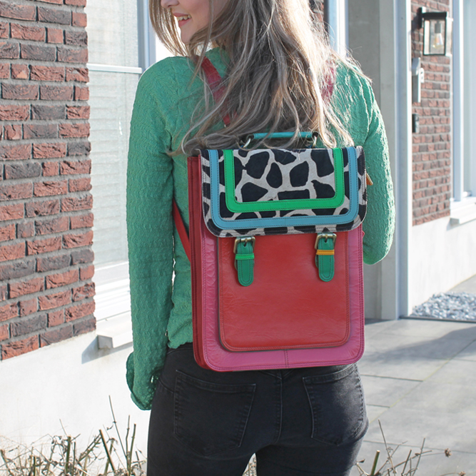 De Rina rugzakken hebben een ideaal formaat en zijn perfect voor je werk, school of een dagje weg. Er past namelijk lekker veel in: deze multicolor rugzak is groot genoeg voor een laptop, (grote) fles water, je lunch, notitieboeken en natuurlijk je portemonnee. Aan de binnenkant heeft de rugtas een handige indeling: 2 vakken (dus een apart vak voor je laptop) en een ritsvakje. Aan de voorkant zit ook nog een ruim ritsvak, waar ook nog eens een extra ritsvakje in zit! Handig voor kleinere spullen zoals je sleutels, make-up, zonnebril etc. Wat wil je nog meer? 😉