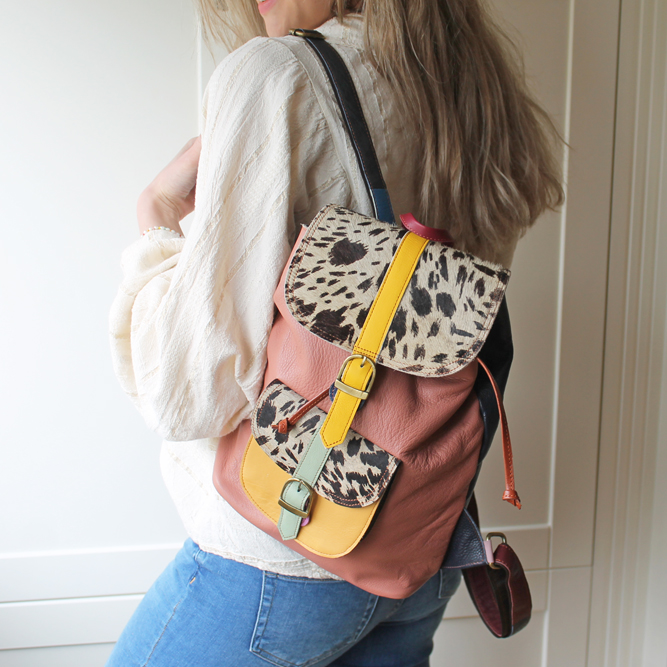 De Tanvi tassen kun je op 2 manieren te dragen: als rugtas én als crossbody tasje. Als je het hengsel bovenaan aantrekt tover je de rugtas namelijk in één handomdraai om tot een “normale” handtas die je schuin kunt dragen. Hoe handig?! Onder de klep vind je aan de voorkant nog een extra vak (zonder sluiting) en de tas zelf sluit met een rits. Aan de achterkant van de tas vind je ook nog een handig ritsvak. De tassen zijn groot genoeg voor je portemonnee, telefoon, zonnebril, sleutels en een 500 ml flesje water.