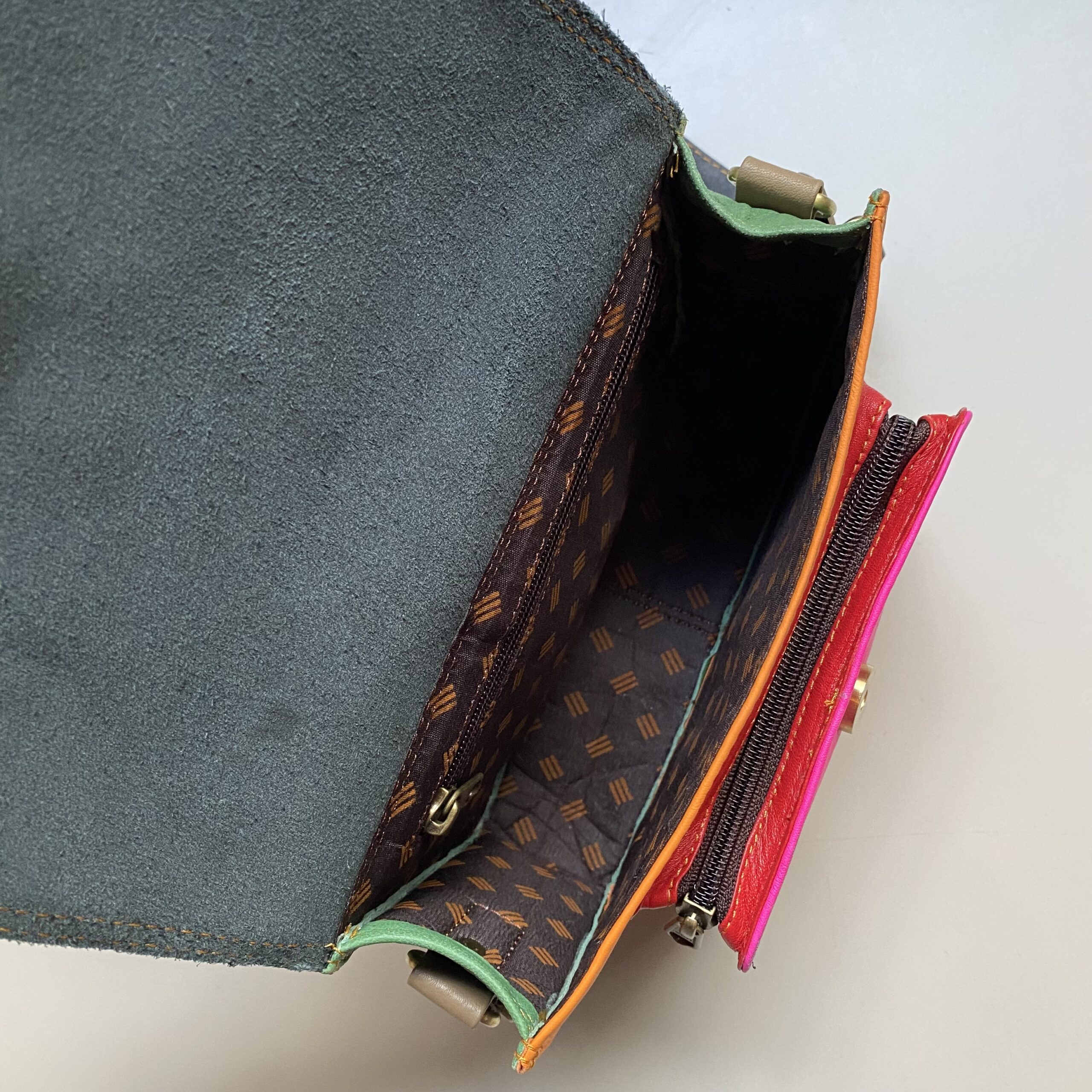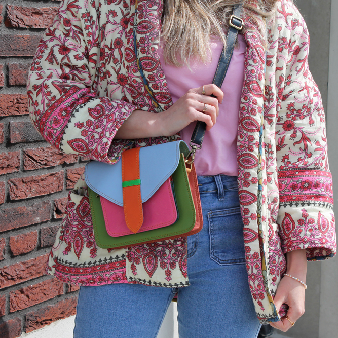 De Multicolor Ambar bags zijn lekker kleurrijk en hebben een tof langwerpig formaat. En hij is extra uniek, want de Ambar tassen hebben als een van de weinige modellen geen gesp. Ze sluiten met een drukknoop. Deze eye-catcher maakt elke outfit helemaal af, of je nu van kleur houdt of juist liever wat neutralere kleding draagt (dan springt de tas er extra uit!). Aan de binnenkant bestaat deze Ambar tas uit één ruim vak met een ritsvakje om bijvoorbeeld je pasjes in te doen. Ook zit er een lang, verstelbaar hengsel bij elke tas.