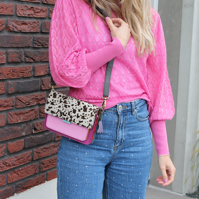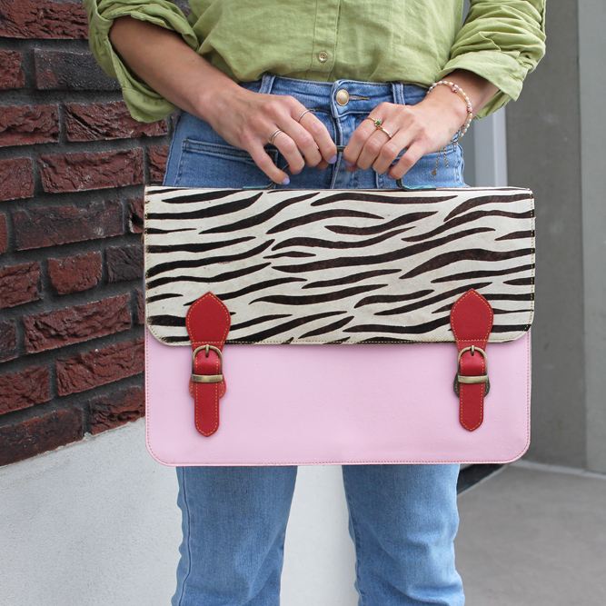 Ben je op zoek naar een handige tas die nét even anders is? Dan is het Rubi model wellicht het perfecte model voor jou! De Rubi tassen hebben een clutch model mét een lang verstelbaar hengsel. Je kunt ‘m crossbody dragen tijdens een dagje stad of als clutch tijdens een avondje uit of bruiloft. Deze leren tas heeft een handige rits zodat je spullen veilig opgeborgen zijn en is ook groot genoeg voor een 500 ml flesje water. Extra leuk is dat je deze tas op 2 manieren kunt dragen: als clutch met de flap naar beneden, maar je kunt de flap ook omhoog doen zodat je ineens een vierkant model hebt, met aan de ene kant een dierenprint en de andere kant een neutrale effen tas! Hoe tof?