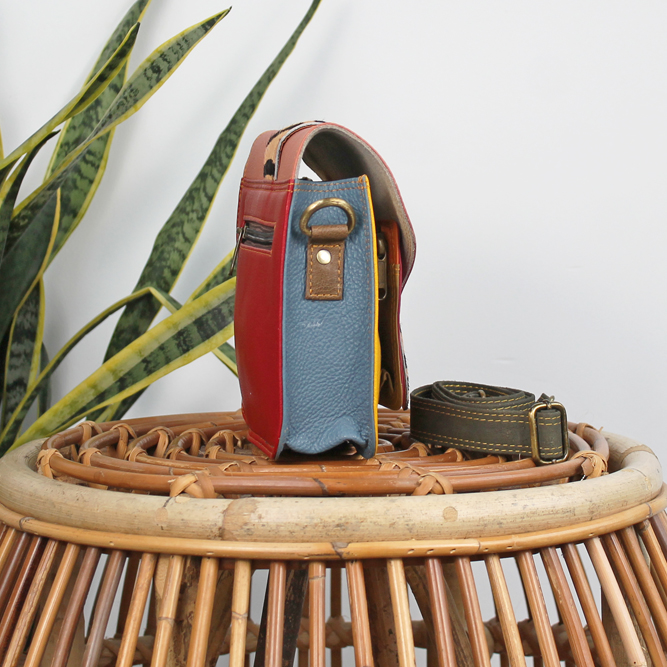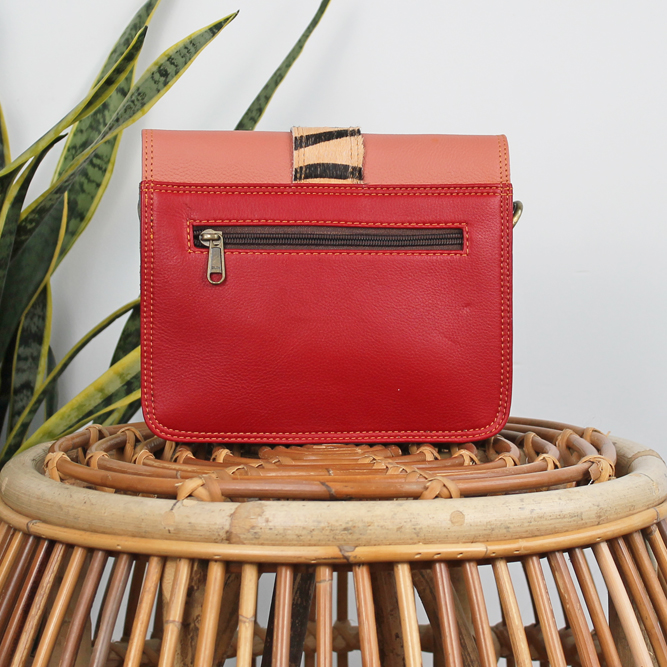 Deze geel met rode Multicolor Kanta bag met zebraprint maakt van elke outfit een feestje! Deze fairtrade tas heeft een perfect tussenformaat met een handig ritsvak aan de voorkant én nog een ritsvakje aan de achterkant. Aan de binnenkant bestaat deze tas uit één ruim vak met een ritsvakje om bijvoorbeeld je pasjes in te doen. De Kanta tas is gemaakt van echt leer en heeft als een van de weinige tassen geen gesp. De tas sluit met een drukknoop en er zit een lang, verstelbaar hengsel bij de tas.